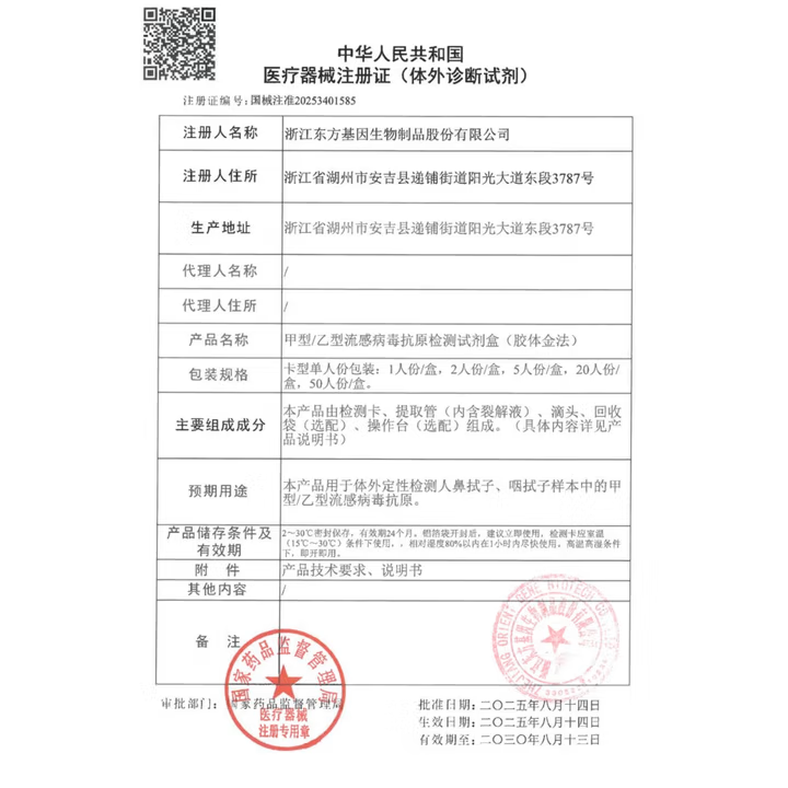 萬(wàn)子建 萬(wàn)子健東方基因 甲型/乙型流感病毒抗原檢測(cè)試劑甲乙流試紙流感快速檢測(cè)