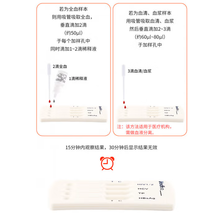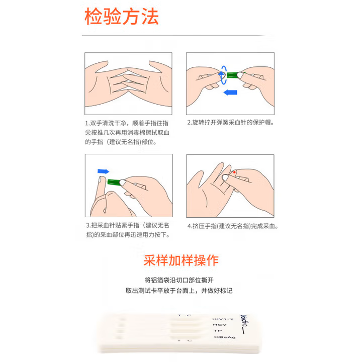 萬孚(Wondfo)hiv艾滋檢測試紙 乙肝丙肝梅毒艾滋四聯卡傳染病檢測試紙居家自檢