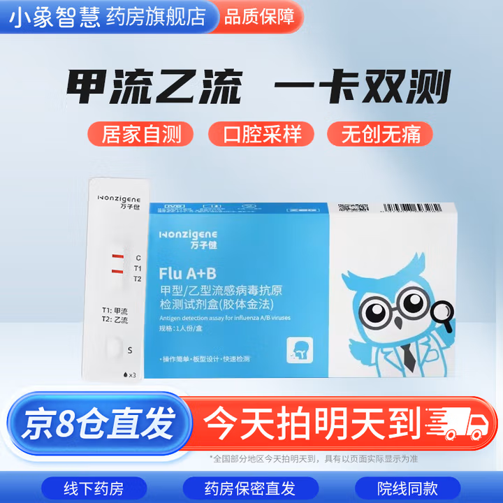 萬子建 ZOG萬子健甲型乙型流感病毒檢測試紙抗原兒童鼻咽測試劑盒自測